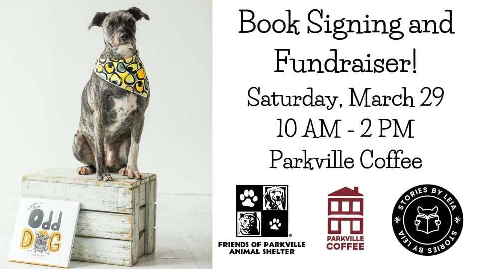 Our favorite Northland author Leia Barrett is having a book signing and fundraiser for Friends of Parkville Shelter. Come see her at Parkville Coffee where you can buy our favorite book Odd Dog, get it signed by Leia, and also help support the Northland Shelter. Proceeds will go towards helping the shelter provide for animals in need in our Northland. Enjoy a coffee, and grab this book for your kids, or grandkids, or any kids!! Click the link for more details!